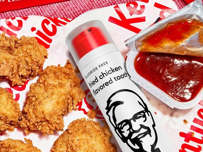 KFC berkolaborasi dengan His Smile, brand pasta gigi populer di Australia yang dikenal dengan varian rasa unik seperti sorbet mangga dan kelapa.
