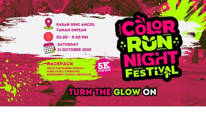 Acara ini dijadwalkan pada 11 Oktober 2025 di Pasar Seni Ancol. Para peserta akan menikmati pengalaman lari malam yang tak terlupakan dengan konsep yang lebih spektakuler dan penuh warna.